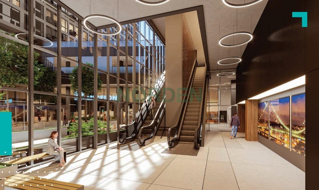 - Food hall com opções gastronômicas variadas