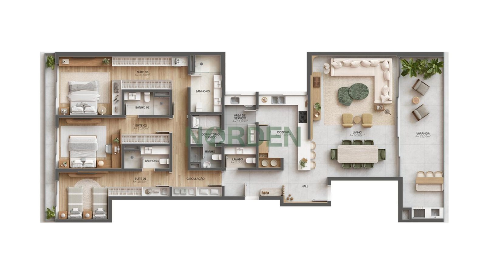 Com apartamentos amplos de 182m² a 976m² e opções de 3 ou 4 suítes, o Oceana é ideal para quem busca o equilíbrio perfeito entre conforto e elegância. Cada unidade conta com 2 a 4 vagas de garagem e arquitetura assinada que traduz o design contemporâneo das praias mais icônicas do mundo.