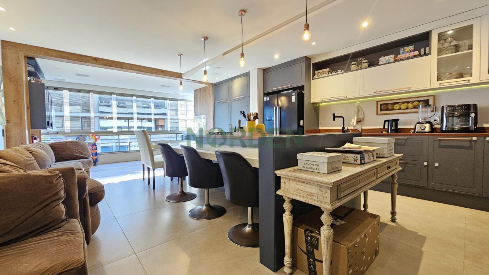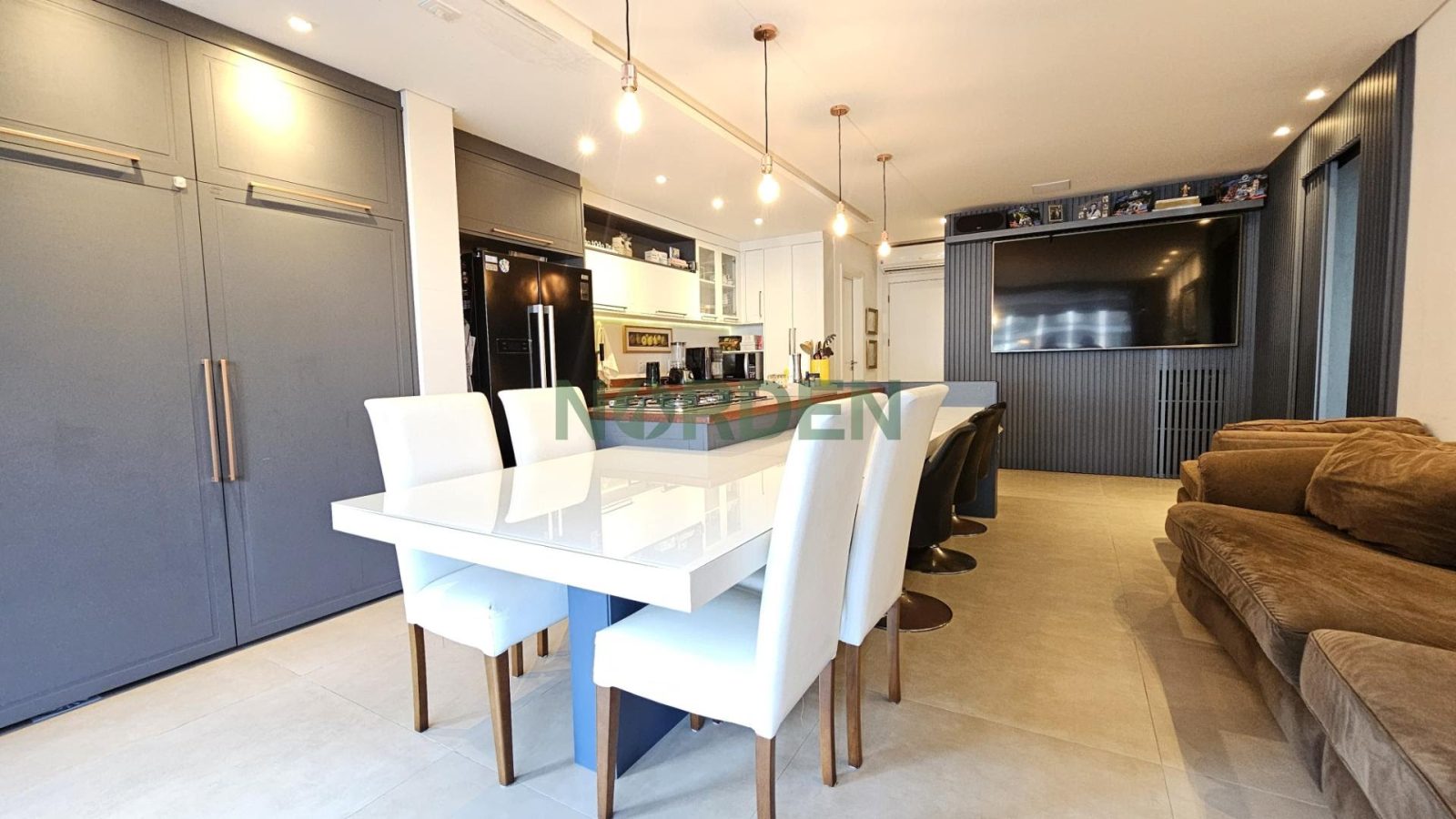Com 114,71m² privativos, o imóvel oferece uma planta bem distribuída com 3 suítes, 4 banheiros, escritório, hall de entrada e 1 vaga de garagem. Os ambientes são climatizados e mobiliados, garantindo funcionalidade e sofisticação em cada detalhe. A área social, integrada entre sala de estar e jantar, se conecta à sacada com churrasqueira, com uma incrível vista para o mar de Jurerê.