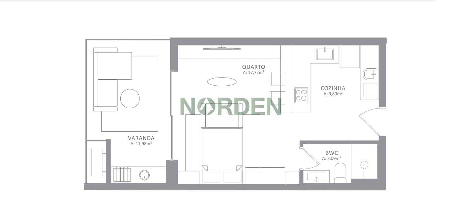 Viva a experiência única de morar em um studio de 42m² no coração do Novo Campeche.