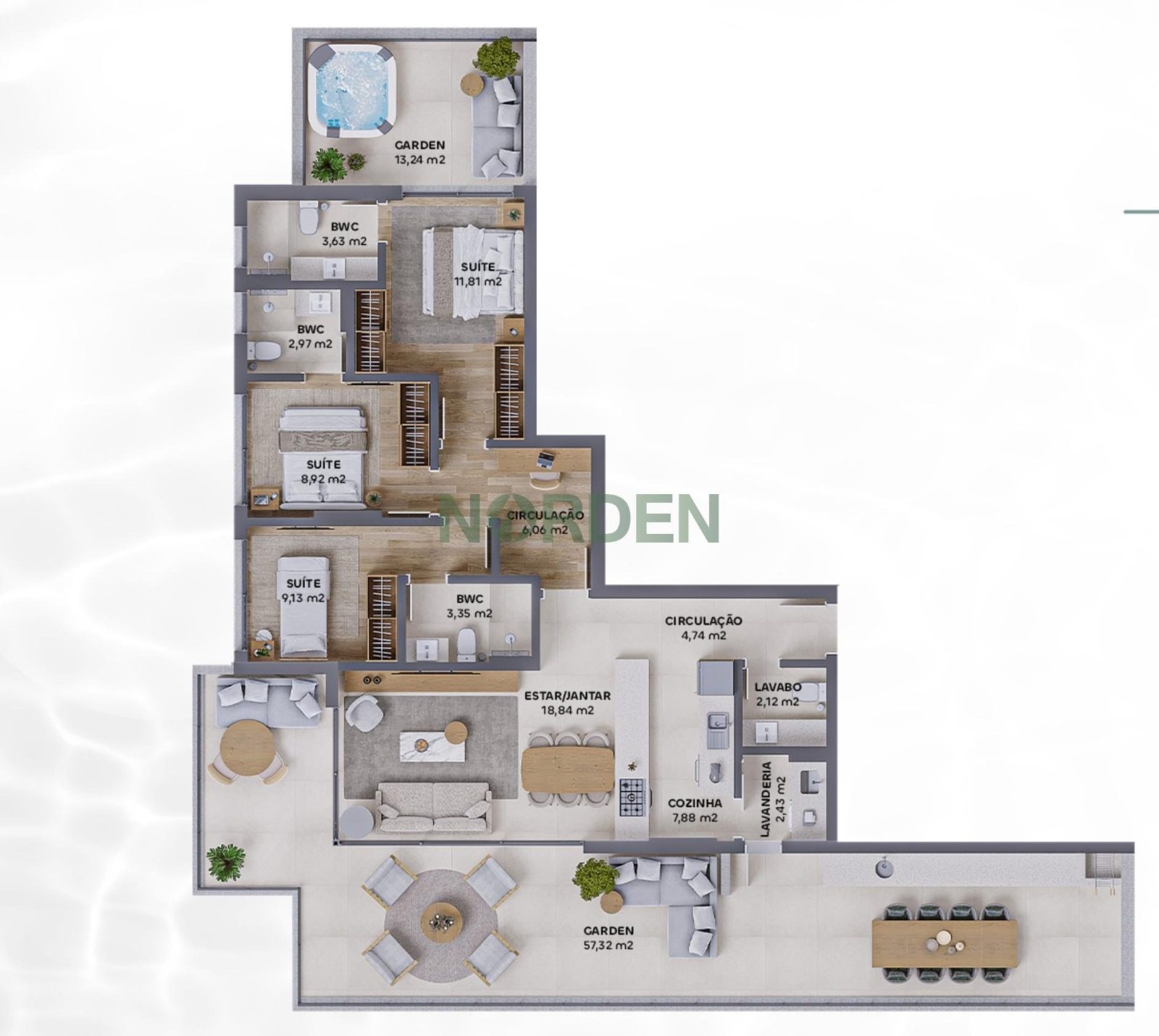 Para quem sonha com a amplitude de uma casa e a praticidade de um apartamento, a Unidade Garden 201 é simplesmente única.
