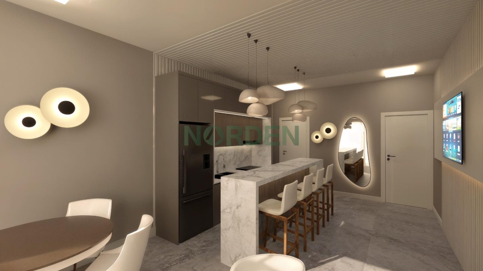 Sua área social, entregue mobiliada e equipada, inclui: • Hall de entrada • Espaço gourmet • Fireplace • Coworking • Lavanderia • Spa • Pergolado • Balanços suspensos • Jardim das águas • Daybeds • Pet place