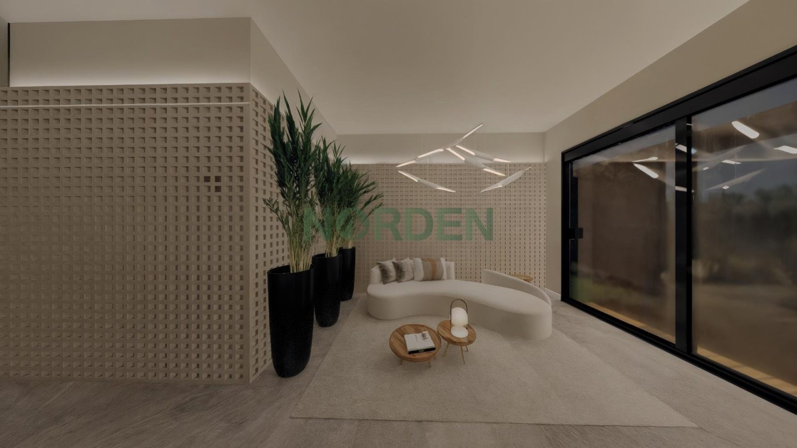 • Hall de entrada • Espaço gourmet • Coworking • Lavanderia • Spa • Pergolado • Fireplace • Balanços suspensos • Jardim das águas • Daybeds • Pet place