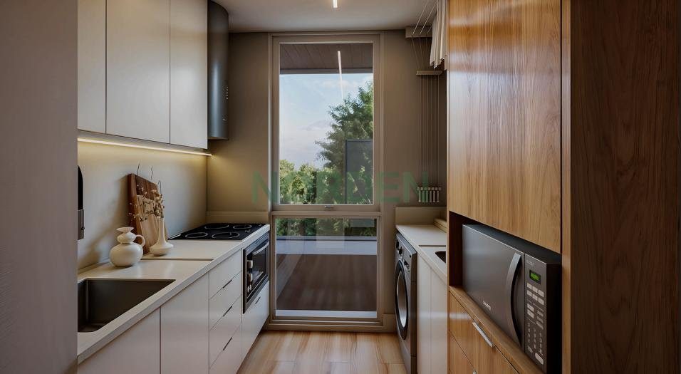 Voltado para a face sul, o studio aproveita a ventilação natural e conta com acabamentos de alto padrão, como piso porcelanato, ralo linear, nicho no box do banheiro, fechadura digital e infraestrutura para ar-condicionado.